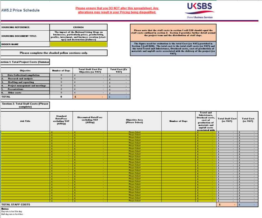 The final date and time for the submission of bids is Monday 18th March 2019 11:00 DO NOT apply directly to the buyer. All tender information MUST be submitted through the CCS eSourcing Portal. Brief Description of Requirement The aim of this quantitative study is to gain a better understanding of the impact of minimum wages, especially the National Living Wage, on businesses, particularly prices, productivity, profits, investment, and business creation (start-ups) and destruction (failures). Please ensure you review all attached information to ensure a full understanding of this requirement. All attachments can be found with the RFx attachments tab within the Emptoris System. This contract will be awarded based on the evaluation criteria set out in the ITQ document. How to Apply As part of the strategic alliance between UK Shared Business Services Ltd (UK SBS) and Crown Commercial Service (CCS), UK SBS will be using the CCS eSourcing Suite for this procurement. To register on the CCS eSourcing portal please follow the details contained within the Additional Information section of this notice. If you are already registered on the CCS eSourcing portal and wish to register your interest in this opportunity please email; expressionofinterest@crowncommercial.gov.uk Your email must clearly state: * the name and reference for the procurement you wish to register for; * the name of the registered Bidder; * the name and contact details for the registered individual sending the email. Please disregard any content in this notice that requests your organisation "to apply directly to the buyer" as this unfortunately a system generated error, that is outside of the Contracting Authorities control. Additional information: DO NOT APPLY DIRECTLY TO BUYER All submissions will be assessed in accordance with the Public Contracts Regulations 2015, for procurement values that exceed Regulation 5 (Threshold amounts) Responses must be received by the date in the tender documentation; responses received outside of the deadline or not sent via the eSourcing portal will not be accepted or considered further for this opportunity. How to Register on the CCS eSourcing Suite If you have not yet registered on the eSourcing Suite, this can be done online at https://gpsesourcing.cabinetoffice.gov.uk by following the link 'Register for CCS eSourcing'. Please note that, to register, you must have a valid DUNS number (as provided by Dun and Bradstreet) for the organisation which you are registering, who will be entering into a contract if invited to do so. Once you have registered on the eSourcing Suite, a registered user can express an interest for a specific procurement. This is done by emailing expressionofinterest@crowncommercial.gov.uk. Your email must clearly state: * name and reference for the procurement you wish to register for; * name of the registered Bidder; * name and contact details for the registered individual sending the email. Crown Commercial Service will process the email and then enable the Bidder to access the procurement online via the e-Sourcing Suite. The registered user will receive a notification email to alert them once this has been done. The Sourcing documents can then be accessed on the eSourcing Suite at: https://gpsesourcing.cabinetoffice.gov.uk using the instructions detailed in the Specification documents within Contracts Finder. As a user of the e-Sourcing Suite you will have access to Emptoris email messaging service which facilitates all messages sent to you and from you in relation to any specific RFX event. Please note it is your responsibility to access these emails on a regular basis to ensure you have sight of all relevant information. For technical assistance on use of the e-Sourcing Suite please contact Crown Commercial Service Helpdesk: Telephone: 0345 010 3503 Training documents to support Bidders to utilise Emptoris CCS eSourcing are available in the Contracts Finder Tender documents section. About UK Shared Business Services UK Shared Business Services Ltd (UK SBS) brings a commercial attitude to the public sector; helping our contracting authorities to improve efficiency, generate savings and modernise. Where UK SBS is not named as the Contracting Authority within the documentation, UK SBS will be acting as an agent on behalf of the Contracting Authority. Our broad range of expert services is shared by our customers. This allows our customers the freedom to focus resources on core activities; innovating and transforming their own organisations. For full details of our partne