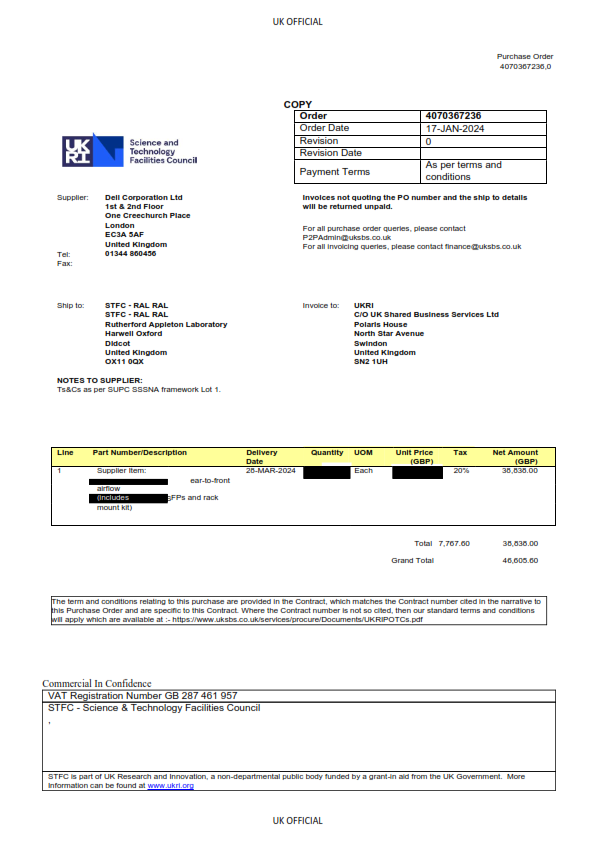 ***This is an award notice, not a call for competition*** UK Research and Innovation (UKRI) had a requirement for the supply of Dell San FC Switches. This Call Off contract has been sourced via the Servers, Storage and Solutions National Agreement (SSSNA) Framework.