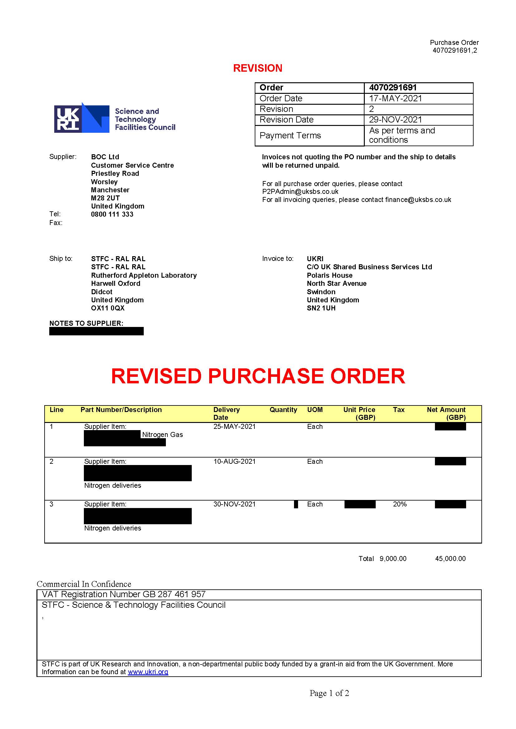 "description": "***** THIS IS AN AWARD NOTICE, NOT A CALL FOR COMPETITION ***** This procurement is being concluded following a direct award under LAB4041 SU Lot 6 Purchase order for Nitrogen deliveries for UKRI - STFC",